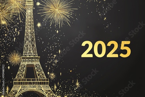 2024 and Rings, and celebratory colorful fireworks over the Eiffel Tower in Paris (2024), France