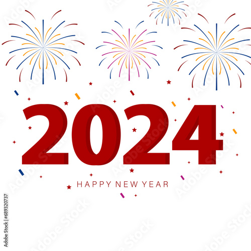 2024 happy new year firework, confetti poster banner on white background. Flat style vector illustration.