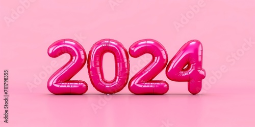 2024 New Year Banner with Pink Balloons over a Pink Background with copy space.