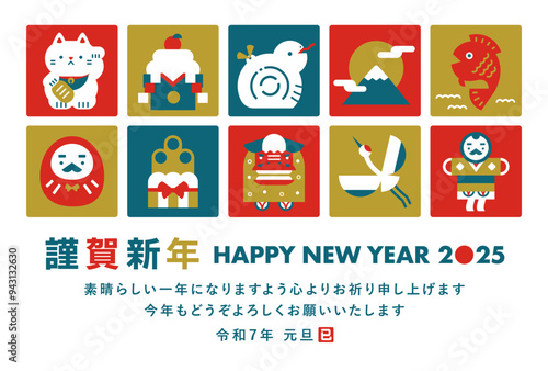 2025年巳年のシンプルでレトロおしゃれなデザインの年賀状_年賀素材・横