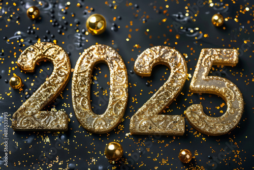 2025 gold jewel numbers, new year gemstones, diamond greeting card, gem celebrate banner