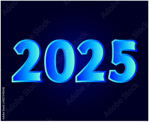 2025 Happy New Year Abstract Blue Cyan Realistic Typography Numbers Design Vector Illustration
