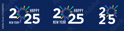 2025 Happy New Year design vector. colorful fireworks and trendy new year 2025 design template.