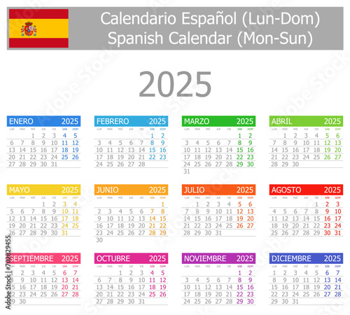 2025 Spanish Type-1 Calendar Mon-Sun on white background