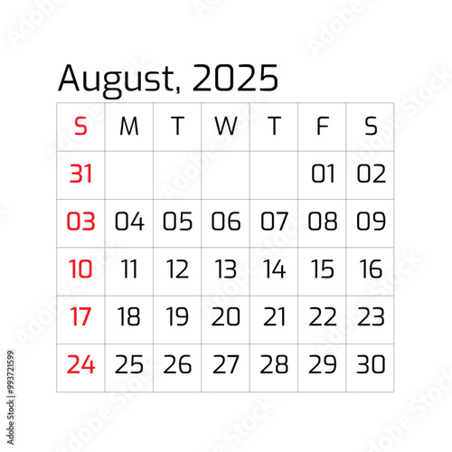2025 Year August Month Single Page Corporate Wall Calendar Template, Professional Style-08 Template. Mock Up, Layout Of A Wall Or Desk Simple Calendar