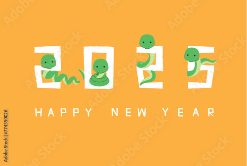 年賀状 2025年 2025に絡む蛇 背景オレンジ