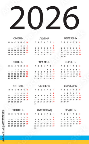 2026 Calendar - vector template graphic illustration - Ukrainian version