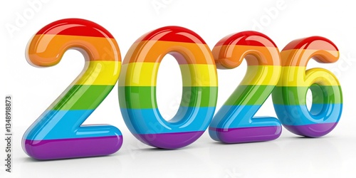 2026 in Rainbow Colors - Vibrant 3D Numbers Symbolizing Diversity, Inclusion, and Celebration on a White Background.