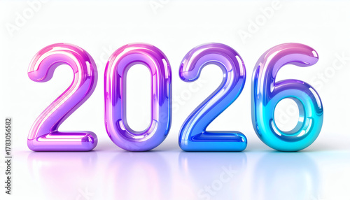 2026 metallic gradient numbers in pink and blue, glossy 3d design for new year background