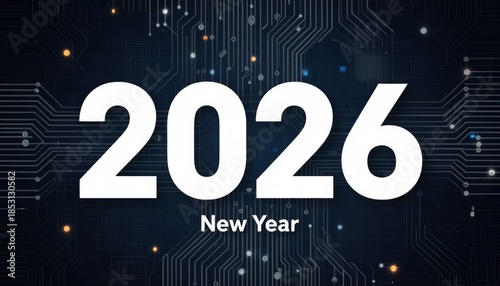 2026 new year celebration embracing technology in a futuristic background