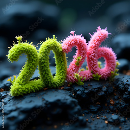 2026 Organic 3D Numbers in Green and Pink Texture – Futuristic Biological Concept Art
