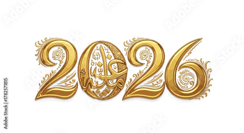 2026 year number in ornate golden arabic calligraphy style