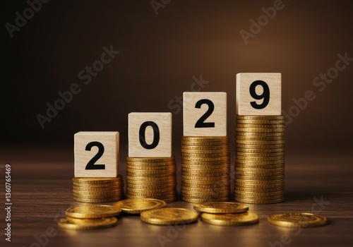2029 Financial Growth Coins Stack Year Blocks Investment Success
