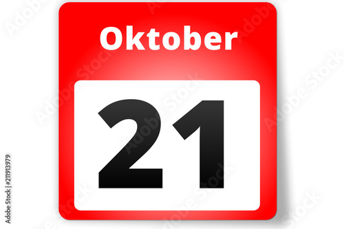 21 Oktober Datum Kalender auf weißem Hintergrund