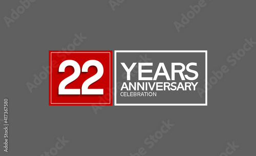 22 years anniversary in square with white and red color for celebration isolated on black background