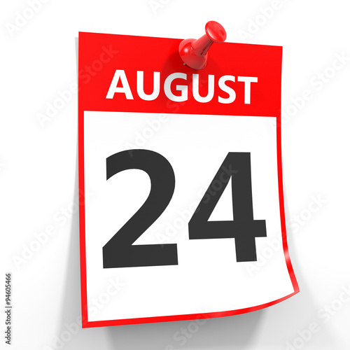 24 august calendar sheet with red pin.