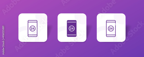 24 hour phone arrow support service icon set bundle in line, solid, glyph, 3d gradient style