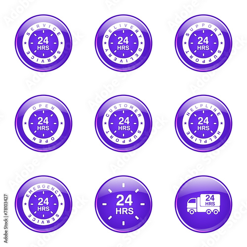 24 Hours Services Violet Vector Button Icon Design Set