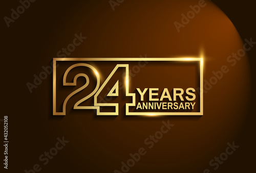 24 years anniversary golden design vector line style in square can be use for greeting card, invitation and company celebration moment