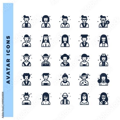 25 Avatar Lineal Fill icon pack. vector illustration.