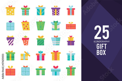 25 Gift Box Flat icon pack. vector illustration.