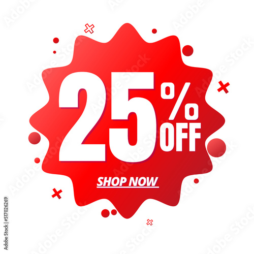 25% off, red online super discount sticker in Vector illustration, with various abstract sale details, Twenty-five
