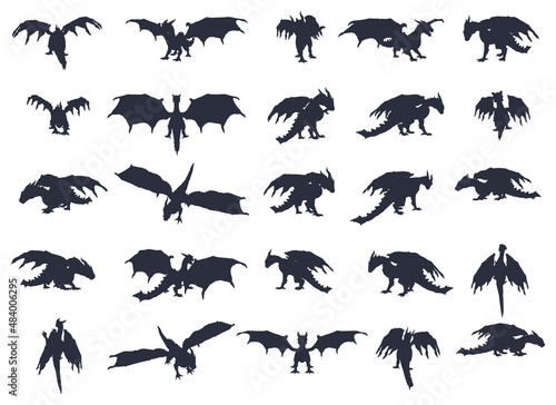 25 poses of dragon silhouette vector edition 1