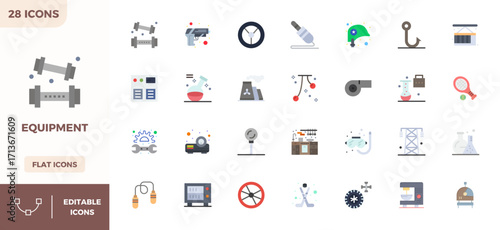 28 PIXEL Perfect Flat Colorful Vector Icons designed for Equipment Interface