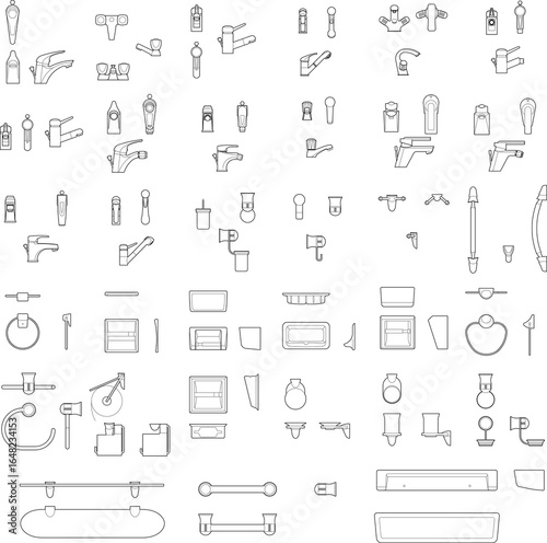 2D Drawing Vector of Bathroom Faucets and Fixtures for Interior and Architectural Design