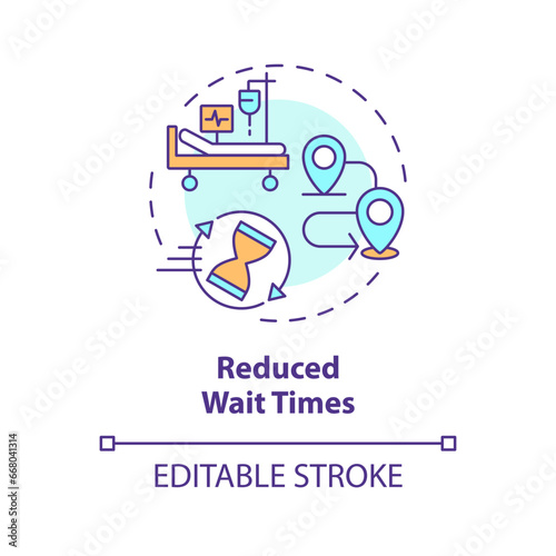 2D editable multicolor reduced wait times icon, simple isolated vector, medical tourism thin line illustration.