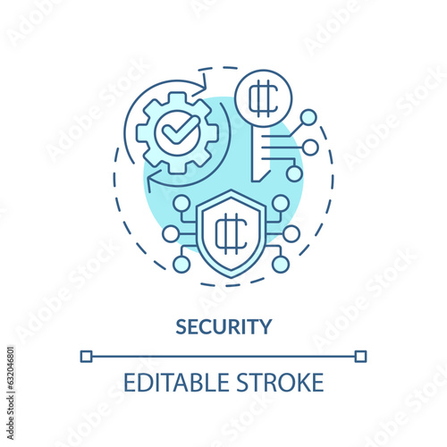 2D editable security thin line icon concept, isolated vector, blue illustration representing digital currency.