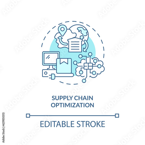 2D editable supply chain optimization blue thin line icon concept, isolated vector, illustration representing overproduction.