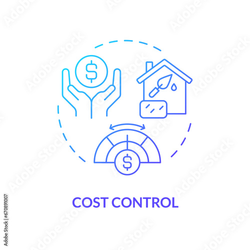 2D gradient cost control icon, simple isolated vector, construction cost thin line illustration.