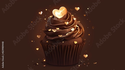 2d illustration of a black isolated cupcake with heart decorations perfect for Valentine s Day