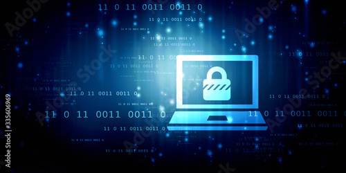 2d illustration Safety concept: Closed Padlock with laptop on digital background