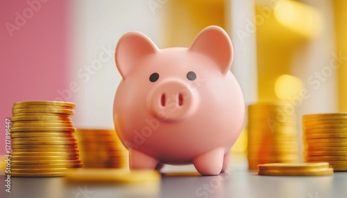 2d Piggy Bank Saving And Financial Presentation Template With Coins And Symbol Elements: A Handy Tool For Financial Analogies.