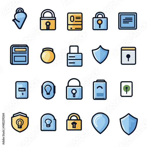 2D Security Line Icons Icons, Flat lay Icon