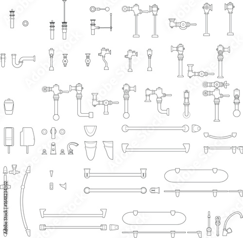 2D Vector Drawing of Bathroom Fixtures for Interior and Architectural Design