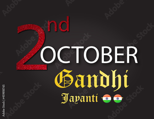 2nd October Gandhi Jayanti illustration. red velvet, white and stylish golden text. tricolor specs on blackish background.