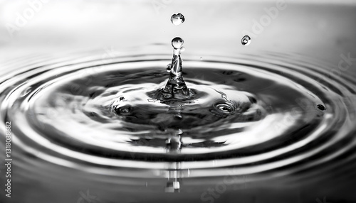 水滴が水面の落ちた瞬間の波紋とモノクロ3