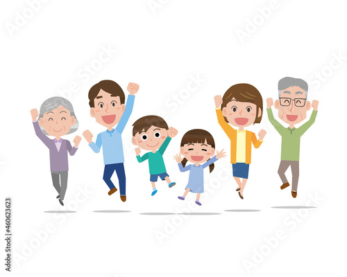 ジャンプする3世代家族