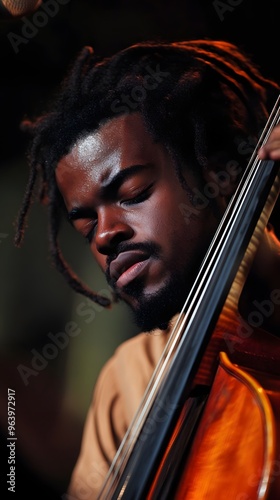 3. A musician playing an instrument, eyes closed, passionate expression