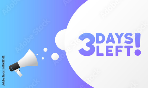 3 Days left sign. Flat, purple, megaphone text, 3 days left sign. Vector illustration