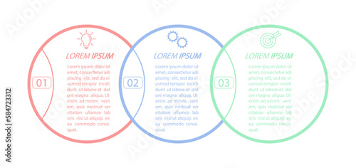 3 stages of development, improvement or training. Infographics with visual action icons for business, finance, project, plan or marketing