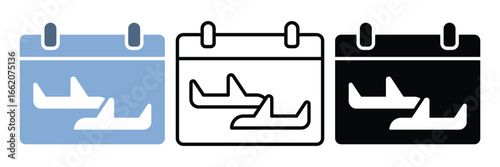 3 Styles Set Calendar with Round Trip Airplane Icon – Travel Planning Symbol