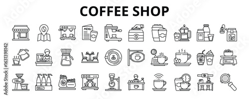 30 Coffee Shop Line Icons Vector - cafe, coffee, shop, restaurant, drink, bar, business