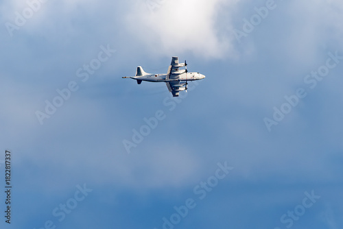 航空自衛隊の輸送機が上空を通過する。 沖縄県那覇市那覇泊港 沖縄の海の玄関口、那覇泊港。 慶良間諸島の座間味島等へゆく高速ジェットフェリー。 クイーンざまみ3号に乗船した。 2025