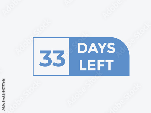 33 days to go countdown template. 33 day Countdown left days banner design. 33 Days left countdown timer