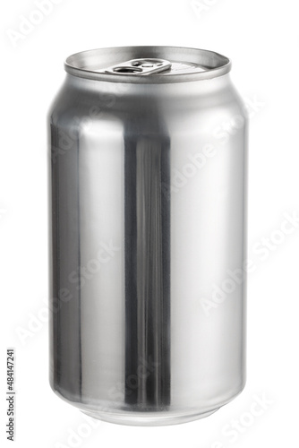 330ml aluminum drink soda can isolated on white background. Mockup without label. Real photo.