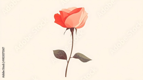 35. A single minimalist rose with smooth, geometric petals and a slender stem, standing alone against a pale, muted background to highlight its graceful simplicity